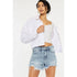 These high rise raw hem shorts are a perfect pair with one of our oversize button ups! This five pocket design style has a zipper fly and a 3" inseam. They're made of 93% cotton, 5% rayon and 2% spandex. Definitely some stretch in these guys!