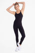 This sleeveless catsuit features a high front neckline and low back for breathability. It has double adjustable straps for extra support, a full built in bra, inseam legging pockets, and smooth flatlock seaming. Wear it to your next workout or throw a jacket over for when you go out.