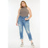 Medium stonewash distressed ankle skinny with the most adorable frayed hem!